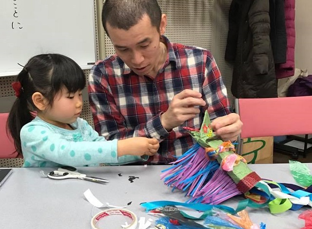 大人たちも子どもたちも夢中になり、2時間はあっという間に過ぎた。次々とカラフルでユニークな作品が出来上がった。