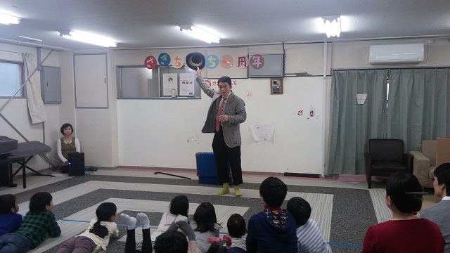 「ごらんのとおり、まねっこ遊びをしているうちに、パントマイムができてしまうんですよ」とのふくろこうじさんの言葉に、みんなうなずいていた。