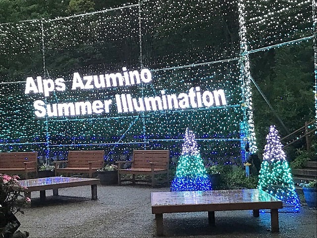 今回のJIBUNマガジンの記事は、お盆や夏休みにそれぞれ旅行したところの見聞録でもよいとのこと。そこでFBの画像を見て気になっていた信州・安曇野の国営アルプスあづみの公園の「サマーイルミネーション」を見に行った。