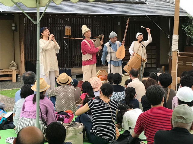 スタッフは文京区の下町のメンバーを中心に荒川区、台東区からのボランティアの有志20人ほどと光源寺の関係者、そして大人のスタッフについてきた子どもたち。開場時間になると、きびきびと動く若いお母さん達の誘導で、観客はステージの演奏スペースの前列から順繰りに芝生に敷かれたシートに座っていった。窮屈ではない程度にしっかりつまった距離感で大人も子どももひとりひとり、わくわく感がひろがっていくようだ。
