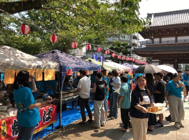 甲子園が沖縄尚学の優勝で幕を閉じ、そろそろ夏も終わりかと思えばフィリピンで発生した台風に引っ張られる形で南からの熱気が居座る8月の24日、小石川の傳通院で地域のお祭り「文京思い出横丁」が開かれた。2022年からボランティアの運営で毎年開催され、今年で4回目。焼きそばやかき氷など18の屋台、津和野町や天竜村など10地域の物産展、本堂横の繊月会館では11のワークショップ、夕方には島根・津和野の石見神楽、新潟佐渡の鬼太鼓、射的、くじ引きなどのゲームコーナー、ビンゴ、 手持ちの花火コーナー、やぐらを組んでの盆踊りなど盛りだくさんの内容で、入口の警備スタッフのカウントで7,700人を超える来場者があった。