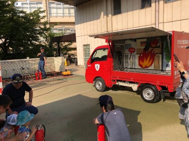 境内の右手奥に淑徳学園の校庭に通じる門があり、その向こうでは射的、ヨーヨー釣り、くじ引きなどのゲームコーナーと、消防署の企画する消化器体験コーナー(実際には水が出るように改造したものを使用)や、消防車や救急車のデザインを模したカートに乗れるコーナーもあった。