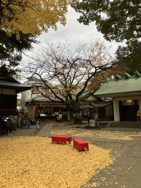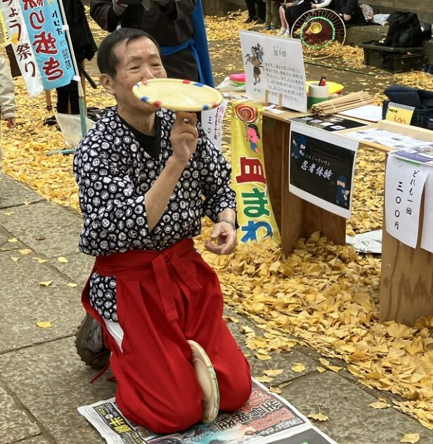 いちょうの黄金色で境内が染まっていた11月29日、駒込天祖神社は、大道芸や露店でにぎわっていた。