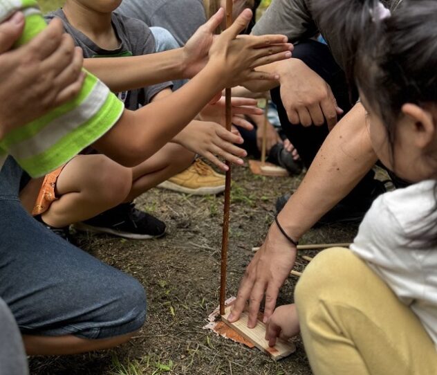 これまでに「放射線を見てみようワークショップ」や「読書感想文ワークショップ」のほか、奥多摩での夏キャンプを開催。木の棒をひたすら回して原始の火をつくる火おこし体験やキャンプファイヤーをやった。「1人でやっても火はおきない。2人で、4人で、、、と子どもたち自身がみんなでやることを考えて実践して、最終的には20人で回して火が付いた。もう感動して大騒ぎで。自分たちでつくった火でマシュマロ焼きしたことはきっとみんな忘れないでしょう」