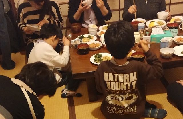 マチイク交流会では、この夏オープンした「マチイク子ども食堂」(さきちゃんちにて・第三金曜日・会員制)を体験していただこうと、「ミニ子ども食堂体験コーナー」を設置。参加者は、用意されたおいなりとみそ汁をグループごとに楽しみました。