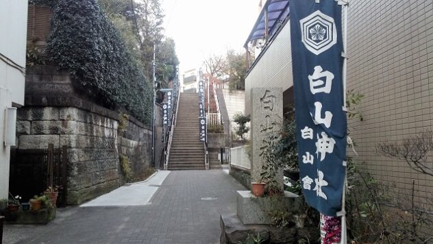 都営三田線白山駅からすぐ、歩いて3分ほどで白山神社に着く。ほとんどの人がここから参拝するが、白山通りにほど近い京華通り商店会側から階段を上っていく参道もある。そこから上ると駐車場を囲むように倉庫が並ぶ。氏子の町会の神輿の格納庫だ。近年は担ぎ手がなく、倉庫に眠ったままの神輿もあると聞く。