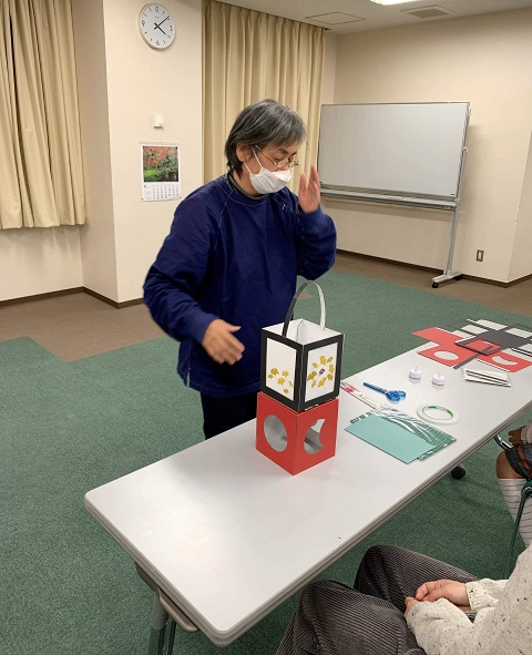 行灯作りの講師を務めたのは、「伝統工芸を体験*チーム有明行灯」(暮らしいろは)メンバーの石山恒子さんだ。「暮らしいろは」は、「日本を楽しむ・遊ぶ・学ぶ」会だという。企画した松塚さんは千駄木の旧安田楠雄邸のボランティアで知り合った石山さんの活動を知り、自分の地域の神社でも「有明行灯」のイベントをやりたいと思ったという。