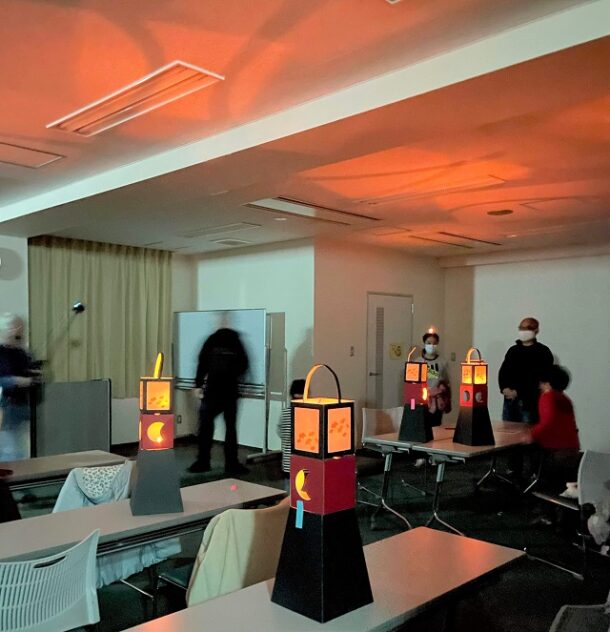 日本橋や浅草雷門の向かいの観光センターで行灯を作ってからまちを散策したり、プリンスホテルで子どもたちとワークショップの後、館内に飾ったりした。「愛宕神社さまの出世の石段(徳川家光の家来が梅の枝を取りに馬で上がった石段)に飾ったり、地域の魅力ある場所に有明行灯を灯して歩きました」。