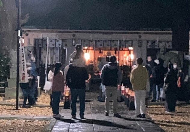 「有明行灯」。江戸時代の暮らしの灯りで、深夜には外箱を被せ、満月と三日月型の窓から漏れる光を常夜灯として、室内に置いた行灯のことだ。現代では室内のみでなく、屋外に、情緒を醸し出す演出として置かれることも多い。昨年11月26日、駒込天祖神社の参道に、手作りの有明行灯がずらりと並んだ。参道に沿って銀杏並木があり、仄かな行灯の光が銀杏の黄色い葉を照らしていて綺麗だった。普段の夜は人通りの少ない静かな場所だが、この日ばかりは参道いっぱいに行灯が立ち並び、子どもたちの楽しげにはしゃぐ声が響き、活気づいていた。