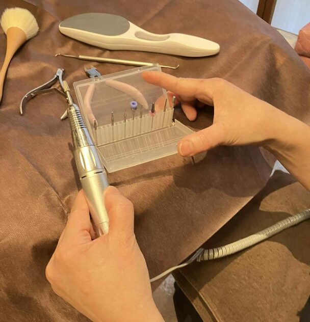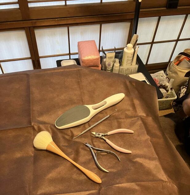 佐々木さんは、もともと看板屋さんで16~17年働いていた。手作業が好きで、それを生かした仕事がしたいと、ネイリストの学校に通った。爪に色を塗ったり柄を書いたりを学んだ後、ネイルサロンに勤めた。しかし、薬でどんどん爪がボロボロになっていったという。お客さんの爪も自分の爪も、ボロボロになってしまう。「これはやりたくない」と 今度はフットケアの学校に行った。足の手入れを始めたら、そちらのほうが爪が綺麗になってどんどん健康になっていく。それが楽しく嬉しくて、フットケアの仕事を続け現在10年ちょっとになる。