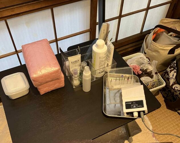 フットケアリストとしてスタートしてから、いろいろな形で仕事に取り組んできた。業務委託や派遣で高齢者施設を回ったり、フットケアサロンの職員、個人宅へ出張したり。文京区根津にある「九条Tokyo」の一室を借り、月一でサロンの出店もしている。