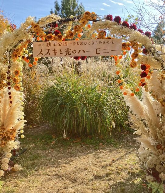 ロバの音楽座のプロデュースによる「花と光のムーブメント 狭山公園 音と遊びときらめきの花 ススキと光のハーモニー」は24日(月・祝)まで。土・日・祝 11:00~19:00 ※パフォーマンスあり。金16:30~19:00※ライトアップのみ。演者・出演団体は、HPで確認を。(稲葉洋子)