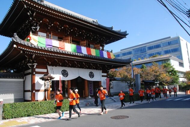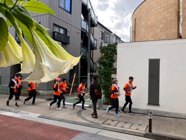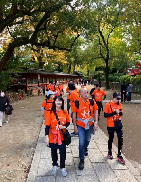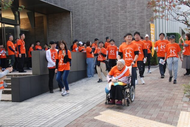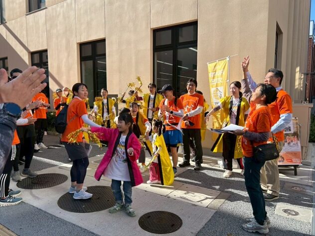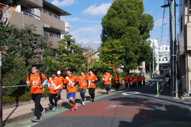 文京区本郷の元町ウェルネスパークが、オレンジ色に染まった。にぎやかなマツケンサンバの踊りをバックに、ランナーがスタート。東コース、西コースに分かれて、11月16日、認知症への理解を深め、共に生きる社会をめざすまちづくりのイベント「RUN伴(らんとも)文京区2025」が開催された。ランナーやボランティアは約130人、地域の居場所や高齢者施設での応援、イベント参加者などを含めると、400人以上が参加した。