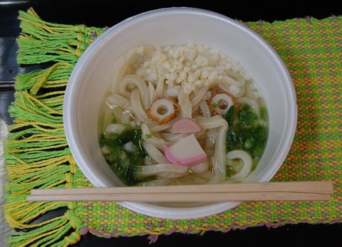 長くて急な宮坂を下るとまもなくコドモカフェオトナバーTUMMYに。ここでは東コースの動坂テラス同様、ビリーうどんが提供された。ちくわやかまぼこで顔の形に盛り付けられ、コシのある手打ち麺に、ランナーや集まった人たち約70人が舌鼓を打った。