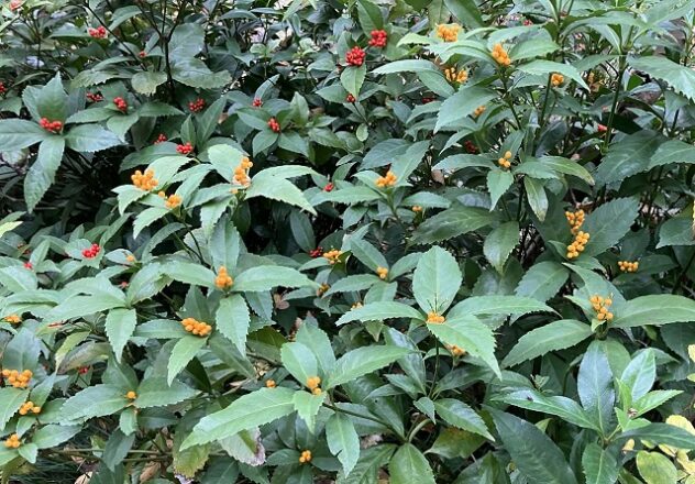 センリョウがたくさんあった。黄色い実をつけるキミノセンリョウも。そう、今は師走。センリョウといえばお正月の縁起物。