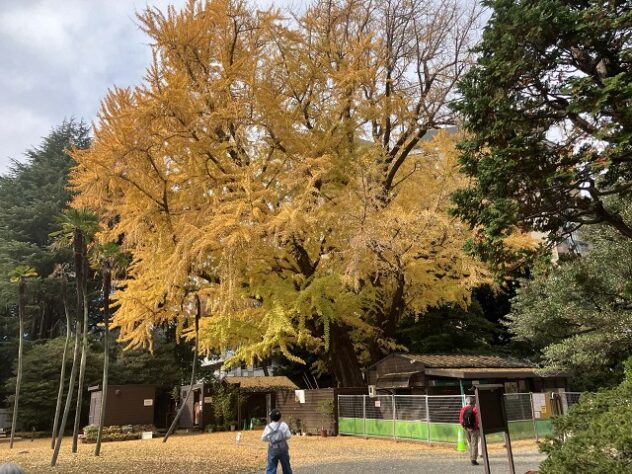 台東区池之端の旧岩崎邸庭園の樹齢400年という大イチョウも見事に黄葉していた。ここは三菱財閥創始者の岩崎彌太郎の長男久彌が、明治29年に建てた、邸宅と庭園。不忍通りから、無縁坂を登っていくと左手は台東区池之端、右手は文京区本郷の東大病院があり、旧岩崎庭園は台東区側にある。