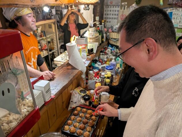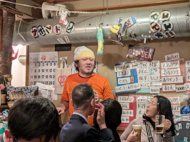 「出来る限りボランティアさんの名前を覚えて、一緒に盛り上げてもらえるようにしています」。学生ボランティアとかかわるときは、一人ひとりと関係を築いて仲良くなって、適材適所の配置を考える。「学生側も身になる経験ができる方がいいでしょう」。学生たちがもちつきをやっていたら、地域の子育て中のパパも入ってきやすい。町会の潤滑油、呼び水になっている、という。知り合いの学生が増えれば、店のアルバイト確保もできる。学生たちが店に飲みに来てくれる。好循環が生まれた。