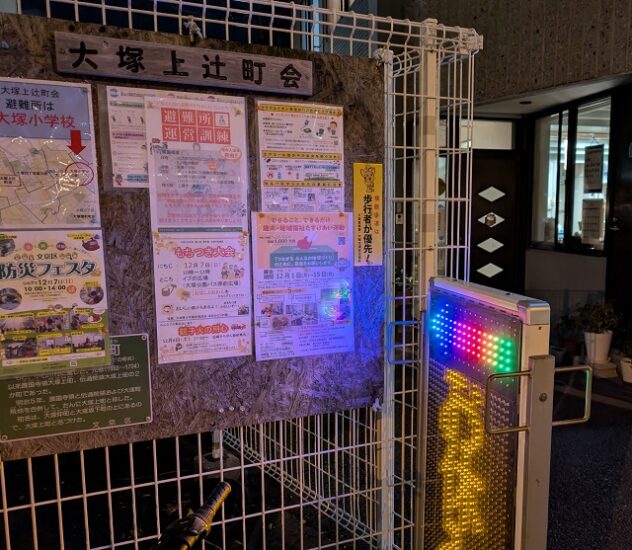 店の入り口を示す春日通り沿いのネオンサインに照らされるのは「大塚上辻町会」の掲示板だ。「もちつき大会」「避難所運営訓練」「防災フェスタ」といったチラシが貼られている。大塚生まれ、大塚育ちの清水さんは上辻町会で活動している。「子どものころ、地域の世話になったし、お祭りで楽しませてもらったから、今度は自分の番」