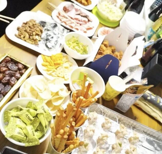 ドリンク、フードは一定量用意するが、1品持ち寄りが条件。「手料理大歓迎!お好きなお飲み物でもOK。一階がまいばすけっとなので、そこでおつまみやお惣菜を買って2階に上がる、というのもアリ」と代表の松本道子さん。今回は「お花見」なので室内にブルーシートを敷いて楽しむという。