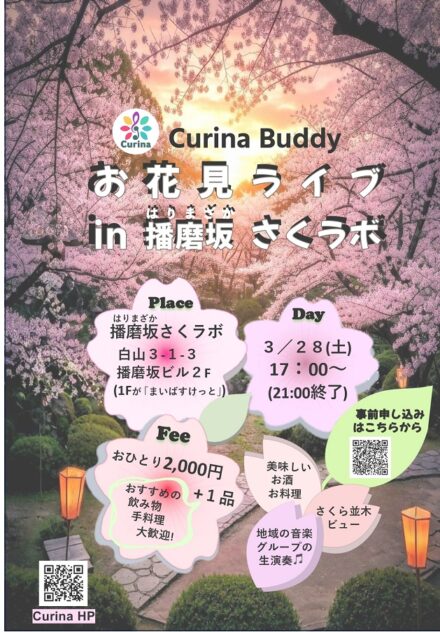 播磨坂さくラボは、「みんなの『やりたい』を実現させるための実験の場(labo)」で、一般社団法人まちのLDKが運営している。桜の満開が予想され、文京さくらまつりのイベントが多数開かれる3月28日(土)17時から、千石の住民らによる団体「キュリナ・バディ(過去記事参照)」の主催で、お花見ライブが開かれる。